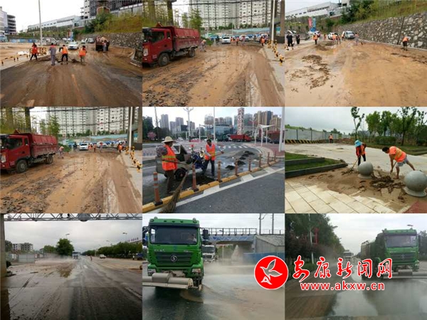 清理道路淤泥并沖洗路面……