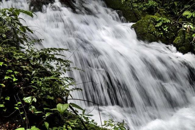 7月7日拍攝的峽谷里似玉帶的瀑布。新華社記者陶明 攝在巴山深處的陜西省平利縣八仙鎮靛坪村,有一處長約近10公里的峽谷河流,鑲嵌著120余個常態瀑布和季節性瀑布……
