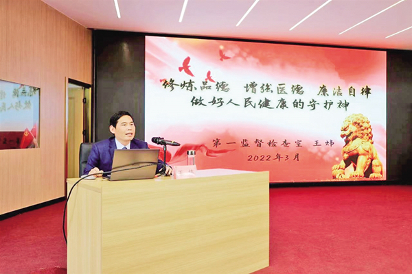 為了進一步深入推進清廉醫(yī)院建設,打造一支政治素質高、工作能力強、服務質量優(yōu)、群眾反映好的醫(yī)療衛(wèi)生隊伍,努力營造風清氣正、健康向上的政治生態(tài)和干事創(chuàng)業(yè)、擔當作為的良好環(huán)境,醫(yī)院先后于3月16日、4月14日,組織召開了2023年黨建暨黨風廉政建設工作推進會和醫(yī)療領域廉潔購銷暨警示教育廉政談話會。會議動員全員職工,凝聚共識、形成合力,積極踐行“忠誠、干凈、擔當、學習、奉獻”工作標準,嚴格落實廉潔從業(yè)“九項準則”,全心全意為人民看好病、服好務,為在中國式現(xiàn)代化道路上聚力建設幸福安康凝聚智慧和力量。