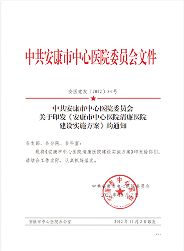 記者:2022年11月2日,安康市中心醫(yī)院黨委印發(fā)了《安康市中心醫(yī)院清廉醫(yī)院建設實施方案》。今后一個時期,醫(yī)院如何圍繞方案,全面推進清廉醫(yī)院建設,切實把清廉要素融入全方位推動醫(yī)院高質量發(fā)展全過程各方面,營造風清氣正的政治生態(tài)和良好發(fā)展環(huán)境?