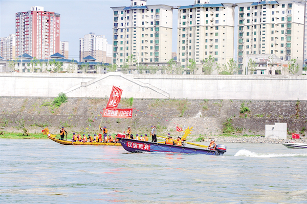 6月19日,漢濱區人武部組織民兵進行沖鋒舟訓練,護航龍舟節。 汪海玉 攝hRd安康新聞網