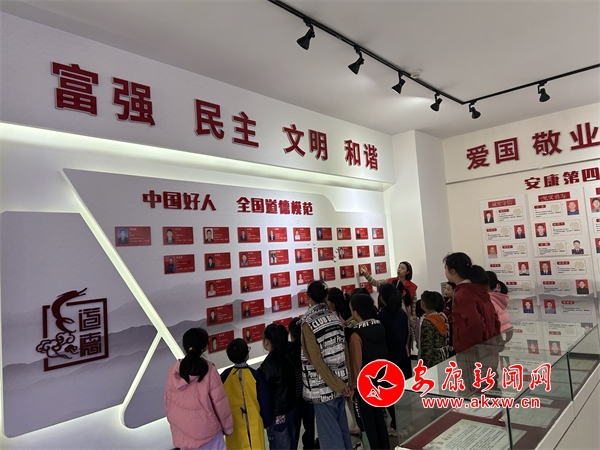 志愿者利用非遺互動(dòng)墻組織孩子們學(xué)習(xí)《紅軍老祖》的故事,通過(guò)文字、圖片以及志愿者的講解讓孩子們直觀了解英雄事跡,了解到“紅軍老祖”這種尊稱背后,寄托著人民群眾對(duì)紅軍真誠(chéng)、淳樸、久遠(yuǎn)的熱愛(ài)和懷念。隨后,志愿者帶孩子們參觀“安康好人館”,“安康好人館”分成前言板塊、全國(guó)道德模范及中國(guó)好人板塊、陜西道德模范及陜西好人板塊、安康道德模范板塊,培養(yǎng)和樹立孩子們“誠(chéng)實(shí)守信”“助人為樂(lè)”“孝老愛(ài)親”“敬業(yè)奉獻(xiàn)”“見(jiàn)義勇為”的文明意識(shí)。最后,志愿者將孩子們帶到書畫展廳,通過(guò)參觀、講解的方式,讓孩子們感受傳統(tǒng)文化的藝術(shù)魅力,希望孩子們學(xué)習(xí)藝術(shù)作品的構(gòu)圖、色彩搭配、線條等藝術(shù)手法并運(yùn)用到自己的學(xué)習(xí)當(dāng)中。