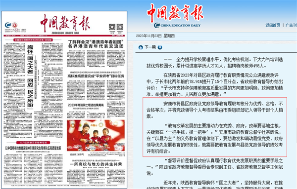 堅持底線思維,讓人民滿意構筑工作全要素。擦亮督導利劍,賦能優質發展。強化問題導向,持續完善教育督導工作體制機制,深化市對縣履行教育職責評價考核,高規格舉辦第三屆市政府兼職督學聘任儀式,全面實施第四輪“316工程”學校高質量發展督導評價工作;安康教育督導工作經驗被《中國教育報》報道,中小學校責任督學掛牌督導做法在全省現場推進會上交流發言,省對市政府履行教育職責評價考核公眾滿意度位居全省前列,教育督導效能不斷提升。深化體教融合,促進身心健康。扎實開展安康市2023年全民健身日系列活動,聯合衛健部門組建安康市全民健身巡講團,以“大健身”促進“大健康”,持續推動學校體育與全民健身深度融合。完善校園足球、籃球、排球三級聯賽體系,率先試點中考體育改革等3項全省體育工作。傾力實施中小學生心理健康促進行動,成立安康市心理健康教育專業委員會,抓實抓細學校心理健康教育“七個一”, 全市學生身心健康水平明顯提升,全省中小學心理健康教育現場推進會在安康召開。織密安全防線,守護師生平安。堅持“大抓安全、抓大安全”思路,狠抓教體領域專項整治,嚴格校園意識形態和網絡管理,深化安全可靠應用替代工作。編制《安康市學校安全管理工作指南》,開展重大事故隱患專項排查整治2023行動,實施“三單三函”和考核督導問責機制,校園安全管理水平實現新突破,成功創建省、市平安校園47所,全年未發生重、特大校園安全責任事故,全市教體系統安全穩定環境持續向好。
