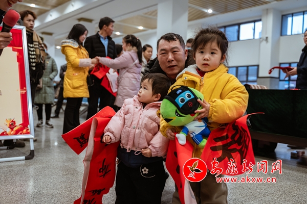 活動中,“驛路安康”愛心服務熱線工作人員身著安安、康康、龍辰辰人偶服,穿梭在人群中,一邊分發福字、對聯,一邊與旅客們互動交流、合影留念。他們現場扶老攜幼、答疑解惑,熱情周到的服務溫暖了在場每一名旅客。URi安康新聞網
