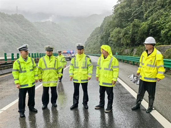 針對強降雨天氣給道路交通安全帶來的不利影響,聯合路政部門對高速公路易積水、易落石、易滑坡等路段持續開展交通安全隱患排查,并函告運營部門治理,及時消除各類安全風險隱患。同時,多點駐警,加強安全提示,第一時間通過官方新媒體平臺以及轄區路面LED情報板,及時發布路況及天氣信息,使廣大的交通參與者及時了解轄區路況,為出行駕駛人提供有效參考,確保廣大群眾出行安全。