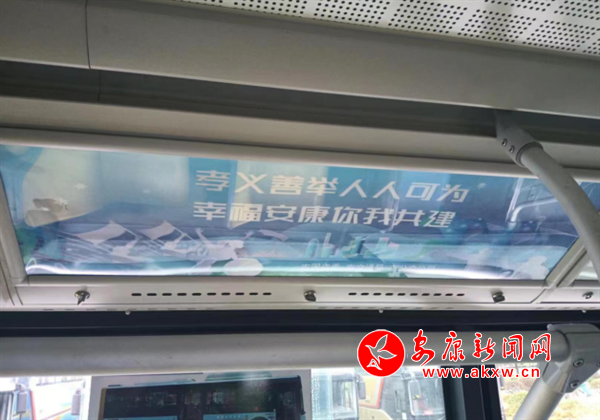 走進安康城區7路公交車廂,印有“孝義善舉人人可為 幸福安康你我共建”等標語映入眼簾,車廂內的公益廣告宣傳氛圍濃厚,將孝義善舉潛移默化地浸潤到乘客心底。