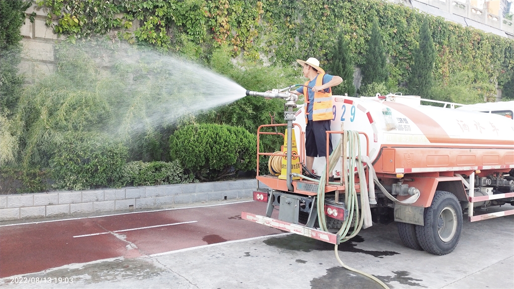 該處采取澆水、松土、修剪措施,黨員干部沖鋒在前,用行動(dòng)詮釋責(zé)任,用奉獻(xiàn)展示擔(dān)當(dāng),用“市政橙”扮靚“城市綠”,抗旱護(hù)綠一線黨旗紅。分區(qū)分段補(bǔ)水,全覆蓋抗旱護(hù)綠。該處采取“分區(qū)域、分時(shí)段、分批次澆灌”方式,對(duì)中心城區(qū)主次干道、公園廣場(chǎng)等公共綠地進(jìn)行抗旱保苗作業(yè)。堅(jiān)持水車澆灌、人工管灌和設(shè)施噴灌等綜合作業(yè)方式,嚴(yán)格落實(shí)“車輛全上、設(shè)備全開、晝夜加班、全力以赴”的工作要求,按照細(xì)澆漫灌、澆足澆透的原則,日均出動(dòng)抗旱澆水人員60余人次、灑水車20余臺(tái)次,應(yīng)澆盡澆,確保162萬平方米公園綠地的綠化苗木得到充分補(bǔ)水。松土遮陰保濕,全要素抗旱護(hù)綠。針對(duì)行道樹、灌木帶、草坪及地被植物的不同受旱程度和耐旱能力,加大澆灌頻率,對(duì)易旱和新栽苗木進(jìn)行重點(diǎn)澆灌,并適時(shí)除草、松土、圍堰,防止土壤板結(jié),增進(jìn)土壤蓄水保濕能力;在漢江大橋主橋及北頭轉(zhuǎn)盤等草坪綠地采取自動(dòng)噴灌系統(tǒng)和人工拉管澆灌結(jié)合作業(yè),不留死角盲區(qū),全方位做好抗旱保綠工作,確?购当C缧Чee(cuò)時(shí)錯(cuò)峰養(yǎng)護(hù),全方位抗旱護(hù)綠。錯(cuò)峰作業(yè),錯(cuò)時(shí)澆水,避開城市交通高峰期,避開高溫時(shí)段澆水,減少植物水分蒸發(fā)。同步組織專業(yè)技術(shù)人員對(duì)綠化養(yǎng)護(hù)、夜間澆水等作業(yè)情況進(jìn)行檢查指導(dǎo),發(fā)現(xiàn)問題現(xiàn)場(chǎng)立即整改,確保做到抗旱不停步、保綠顯成效。
