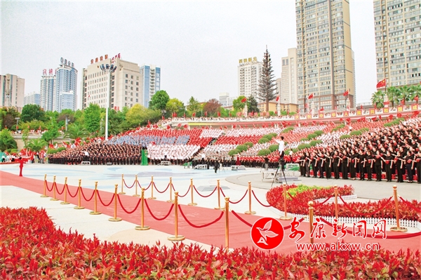 9月28日,安康市慶祝中華人民共和國成立75周年群眾大合唱活動在親水廣場舉行。來自全市100多家單位的黨員干部和社區群眾組成的21支隊伍共4000余人激情豪邁,歌唱祖國。(記者 張喬 攝)5SU安康新聞網