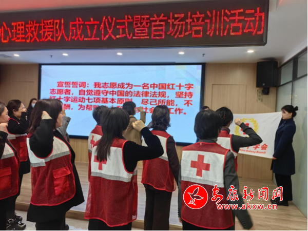 為助力健康安康建設,進一步加強安康市紅十字心理救援能力建設,提升廣大群眾心理健康水平,2024年12月31日上午,安康市紅十字會聯合市人民醫院舉辦安康市紅十字心理救援隊成立儀式暨首場培訓活動。圖為紅十字心理救援隊隊員現場宣誓和開展首場培訓。(鄭時根 攝) Cuy安康新聞網
