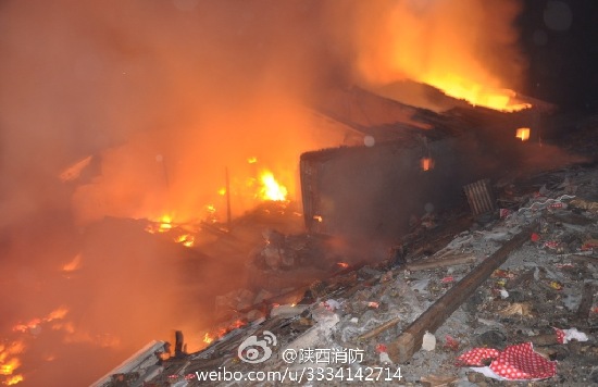 旬陽漢江煙花廠今晨4點發生爆炸起火。(圖片來源:陜西省公安消防總隊)截止早上9點25分,大火被撲滅西部網訊 記者今天(1月21日)從陜西省公安消防總隊了解到,……