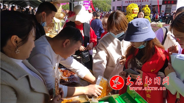 在扶貧產品展銷區,土蜂蜜、臘肉、茶葉等特色農副產品擺滿了各個展臺,前來品嘗購買的游客爭相購買。“這個豆腐干不錯,給我來兩袋。”剛買了臘肉干,張女士又帶了兩袋農戶自制的豆腐干,裝了滿滿一袋子。
