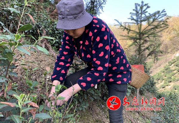 春風(fēng)送暖,又吹綠了茶山。天才漸亮,瀛湖鎮(zhèn)橋興村十二組的楊明芳,就拎著竹籃,小心翼翼的爬上陡峭的茶山上,細(xì)心尋找綠葉中探出的鮮葉,將綠油油的嫩芽采摘進(jìn)竹籃里。茶葉已成為了瀛湖鎮(zhèn)橋興村和火星村茶農(nóng)們的致富之路。
