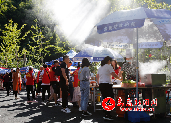 會場周圍的各類鎮坪長壽美食吸引了眾多游人駐足品嘗。hJe安康新聞網