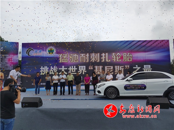 陜西猛馳汽車科技有限公司總經(jīng)理徐曙光介紹,猛馳耐刺扎安全輪胎屬本公司研發(fā)的自主品牌,采用寬途3.0安全技術(shù)、納米高科技,目前是國內(nèi)國際輪胎中技術(shù)最具先進且最具安全性能的品牌輪胎。“猛馳”耐刺扎安全輪胎具有不怕扎、防漏氣、防爆胎、自修復(fù)及降胎噪、高舒適和低油耗等多項高品質(zhì)技術(shù)。本次挑戰(zhàn)活動他們將申報大世界基尼斯之最。