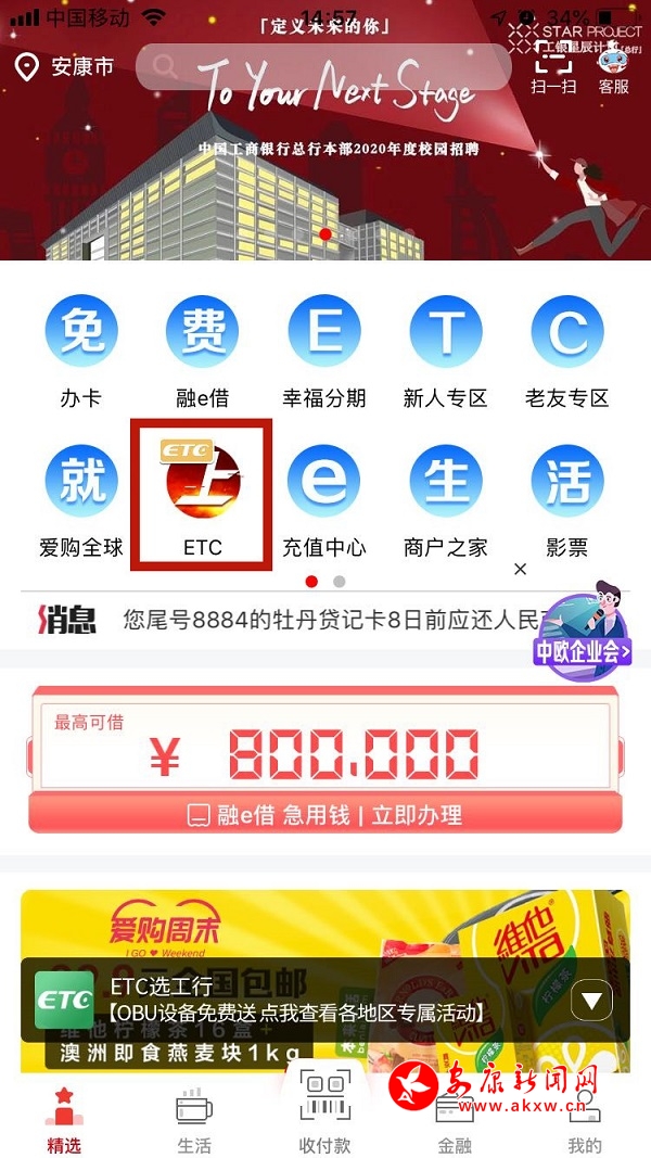 工商銀行安康分行除了在安康各工行網點設有ETC免費安裝點外,同時也在各個高速收費站設有外拓點,一般在周末開放,可以現場辦理,現場安裝。