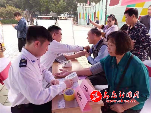 救心義診活動開始后,參展醫院工作人員現場發放宣傳單,提供專家義診咨詢,并為市民免費測血壓,測血糖,義診免費贈藥。活動現場測血壓、血糖,領取贈藥的群眾排起長隊,醫護人員主動攙扶行動不便的老人,耐心進行心血管疾病的防治及健康生活常識指導。
