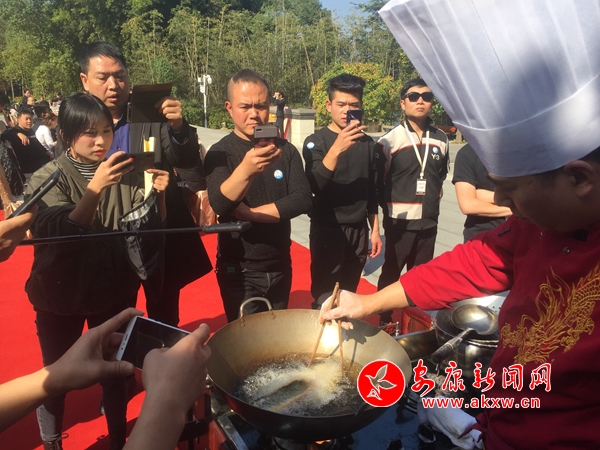 瀛湖酒店魚宴大師現場展示魚宴菜品和廚藝。幾十米長的長桌魚宴,豐富多彩的魚宴菜品,百名游客一邊品吃、一邊拍照,一邊點評菜品,現場熱鬧非凡,游客對長桌魚宴的形式以及菜品贊不絕口。2Ug安康新聞網