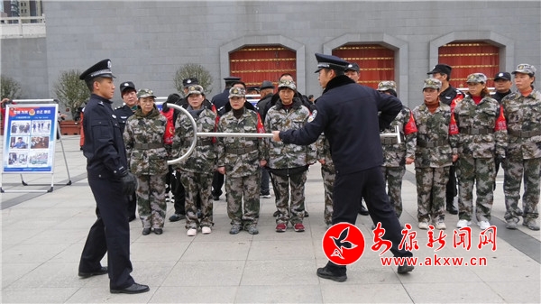 在西城閣廣場,黨員民警聯(lián)合和江北派出所社區(qū)民警,采用擺放法制宣傳展板、發(fā)放宣傳單、法律咨詢服務(wù)等形式,向過往群眾講解法律、法規(guī)常識,宣講綜治平安建設(shè)的新部署、新目標(biāo)、新要求和防盜搶、防詐騙、防暴恐等方面的安全防范知識。同時結(jié)合警種業(yè)務(wù)實際,支部還組織了警務(wù)實戰(zhàn)教官對社區(qū)保安、巡防隊員,就簡單實用的防衛(wèi)、解脫、控制技法和鋼叉、警棍的使用進行了現(xiàn)場講授。