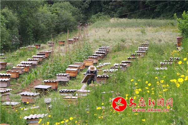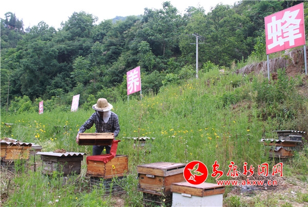“那個就是老余,我們村中華蜂養殖園和養蜂農民專業合作社的負責人......”順著營盤埡村支部書記劉賜堂手指的方向望去,只見一位頭戴防蜂面罩,身著格子襯衣的中年漢子正在花叢中整理蜂箱。