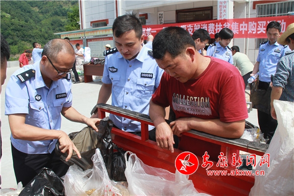 經(jīng)過前期充分對接,集中購買活動現(xiàn)場氣氛熱烈,幫扶群眾準備的生豬、木耳、香菇、土豆、原釀酒等農(nóng)產(chǎn)品很快就被購買一空。銷售現(xiàn)場黨員民警、輔警們爭做愛心幫扶先鋒,積極購買扶貧產(chǎn)品,以實際行動助力消費扶貧,據(jù)統(tǒng)計,本次集中購買活動共購買農(nóng)戶豬肉210斤,原釀酒170斤,木耳、香菇50斤,土豆1200斤,其它各類干菜200余斤,總計價值13000余元。HDr安康新聞網(wǎng)