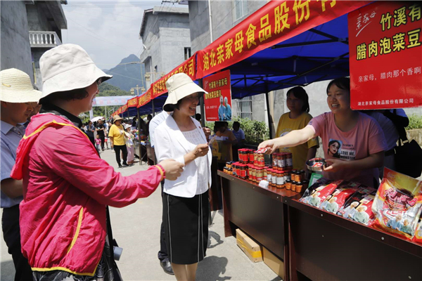 活動現場,鎮坪縣和竹溪縣各具特色的農副產品在竹葉村進行集中展銷,臘肉、茶葉、葵花油、百花蜜以及各種地方特色手工藝品吸引了往來游客紛紛品嘗與購買。