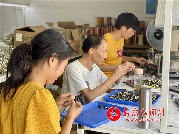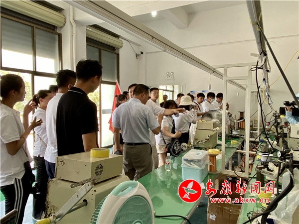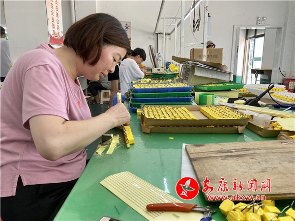 采訪團一行來到平利縣老縣鎮(zhèn)錦屏社區(qū),社區(qū)四個工廠內(nèi)100多名工人正在生產(chǎn)勞作。