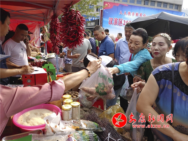 本網(wǎng)訊(記者 張世虎 通訊員 張昊 吳亞君)為深入貫徹落實中省市消費扶貧工作部署要求,進(jìn)一步提升漢濱全區(qū)消費扶貧工作質(zhì)量水平,9月15日,漢濱區(qū)“消費扶貧月”活動啟動儀式暨扶貧產(chǎn)品采購活動在漢濱區(qū)中心廣場啟動。來自漢濱區(qū)各級幫扶單位負(fù)責(zé)人,各鎮(zhèn)辦主要負(fù)責(zé)人,漢濱區(qū)消費扶貧領(lǐng)導(dǎo)小組各成員單位主要負(fù)責(zé)人,貧困村第一書記等共計1300余人參加活動。
