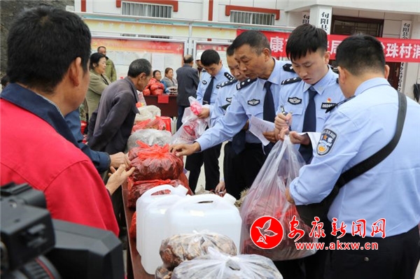 活動(dòng)現(xiàn)場(chǎng),張維護(hù)親切詢問農(nóng)戶收入情況和農(nóng)產(chǎn)品銷售情況,并帶頭購(gòu)買農(nóng)產(chǎn)品。市公安局機(jī)關(guān)廣大民(輔)警爭(zhēng)做愛心幫扶先鋒,積極購(gòu)買扶貧產(chǎn)品。當(dāng)天,珍珠村80余名農(nóng)戶準(zhǔn)備的生豬、牛羊肉、土豆、木耳、香菇、自釀酒等20多種農(nóng)產(chǎn)品被搶購(gòu)一空,銷售總額達(dá)4.5萬(wàn)余元。