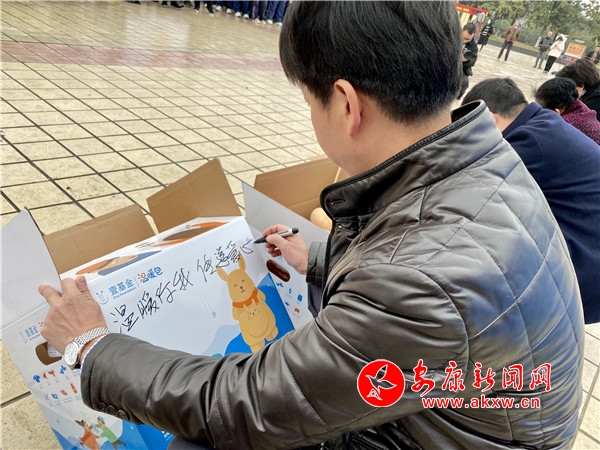 啟動(dòng)儀式上,安康義工聯(lián)合會(huì)負(fù)責(zé)人介紹了2020年壹基金溫暖包項(xiàng)目安康發(fā)放情況;相關(guān)負(fù)責(zé)人為愛心企業(yè)及愛心個(gè)人頒發(fā)了愛心認(rèn)證牌匾;進(jìn)行捐贈(zèng)交接,陜西省體育彩票管理中心安康市管理站捐贈(zèng)價(jià)值3650元的10個(gè)溫暖包,陜西悅嘉冠宏項(xiàng)目管理有限公司捐贈(zèng)價(jià)值3650元的10個(gè)溫暖包,中國生物多樣性保護(hù)與綠色發(fā)展基金會(huì)安康站捐贈(zèng)價(jià)值10950元的30個(gè)溫暖包,漢濱區(qū)文昌城南幼兒園捐贈(zèng)價(jià)值2190元的6個(gè)溫暖包;相關(guān)領(lǐng)導(dǎo)嘉賓作了交流講話;領(lǐng)導(dǎo)嘉賓在溫暖包外包裝箱上寫下對貧困兒童的寄語,又為貧困兒童代表戴上了棉帽、穿上了厚實(shí)棉衣。
