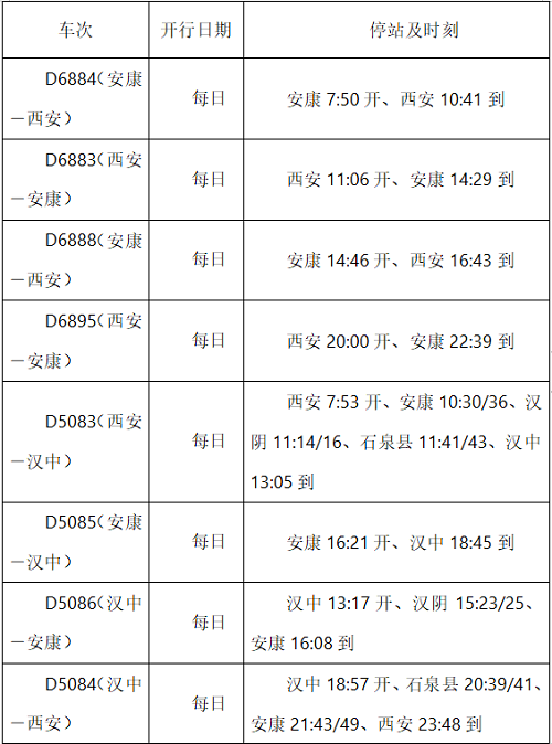 每日常態化動車開行車次、日期、停站及時刻信息如下: KwZ安康新聞網