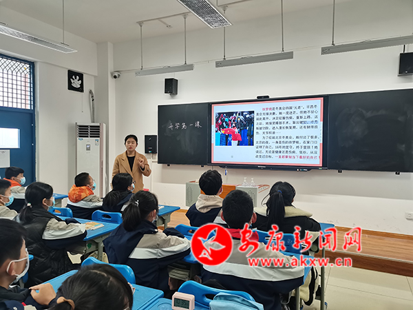 走進漢濱初中高新校區初一年級23班,語文教師劉麗以“‘虎’力全開,做最好的自己”為題,為學生們帶來了“開學第一課”。她以經典詩歌《做最好的自己》為切入點,隨后通過課件展示了我國冰雪項目運動員谷愛凌、徐夢桃、金博洋等人在冬奧會取得的優異成績,深入挖掘成績背后他們拼搏奮發的冬奧精神,引發了學生們熱烈響應,紛紛舉手表達自己的觀看冬奧會的感悟體會。