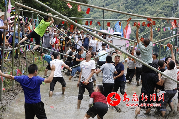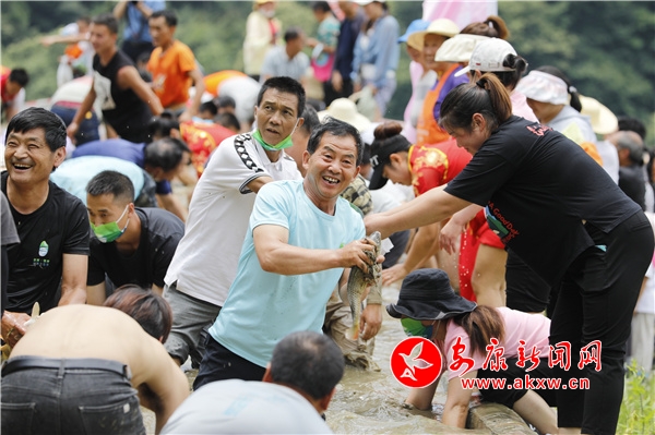 活動(dòng)中的摸魚游戲更是妙趣橫生,群眾高高卷起褲管、手袖,有的甚至赤膊上陣,在渾水里搜索“目標(biāo)”。參賽者們互相展示自己“渾水摸魚”的成果。