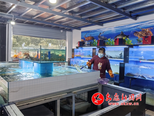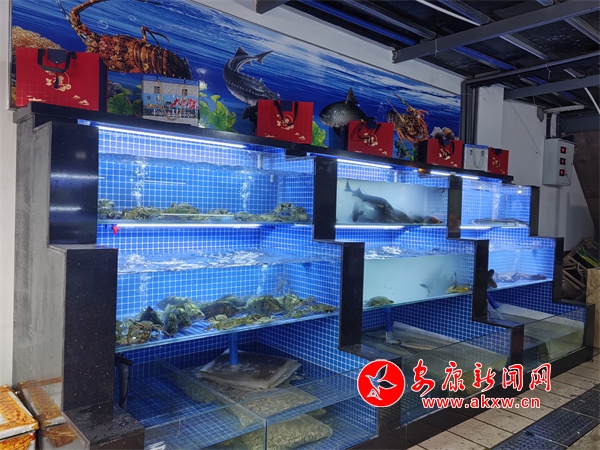 走進(jìn)水產(chǎn)品區(qū)域,店鋪里的蟹、蝦、貝等海鮮貨品齊全,價(jià)格一一寫在魚缸上。購(gòu)買蝦、蟹的顧客陳女士說(shuō),“我之前在興安菜市場(chǎng)的時(shí)候就喜歡在他家買,但原來(lái)那邊環(huán)境不太好,經(jīng)常人都下不去腳,現(xiàn)在店鋪周圍都很干凈。”