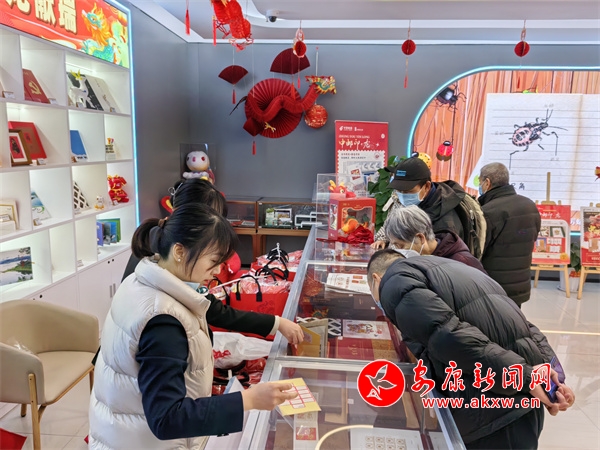 在本次郵票發行之際,安康郵政分公司將金州路郵政支局創新打造為全國首家“龍年生肖+毛玩文創”主題郵局,全面展示生肖“龍”文創產品,郵票、郵品、生肖貴金屬、生肖毛玩等,讓客戶一站式體驗購買到心儀的禮物。活動儀式結束后,與會嘉賓們來到全國首家“龍年生肖+毛玩文創”主題郵局參觀打卡,互動體驗。