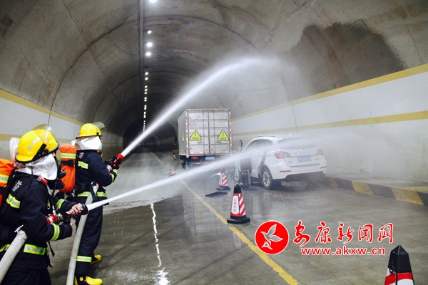 本網(wǎng)訊(記者 張喬) “報告,接110指令,541國道151KM+000M處柏枝埡隧道內(nèi)發(fā)生一起小轎車與危險化學(xué)品運(yùn)輸車發(fā)生追尾碰撞交通事故,可能發(fā)生危化品泄露泄露、燃……