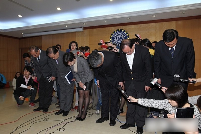 復(fù)興航空執(zhí)行長陳欣德2月4日下午率復(fù)航高層召開記者會,會前所有干部鞠躬道歉。陳欣德說,深深感到抱歉,致上十二萬分歉意。圖為現(xiàn)場。ep2安康新聞網(wǎng)