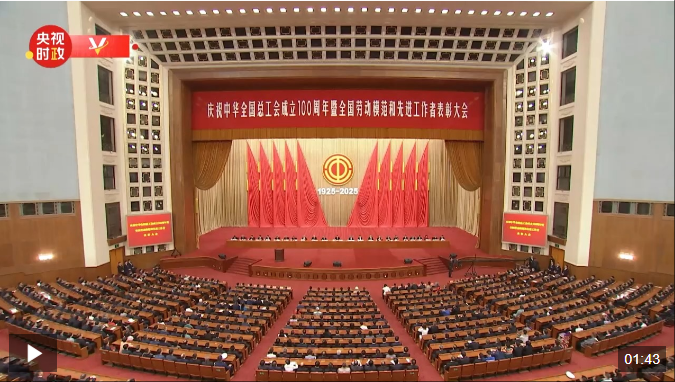 △視頻:慶祝中華全國總工會成立100周年暨全國勞動模范和先進工作者表彰大會隆重舉行