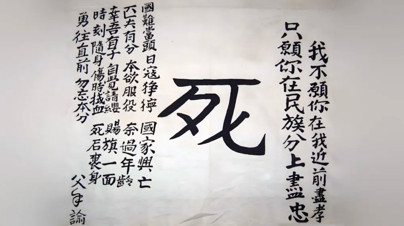 1937年9月,一位名叫王者成的中國父親把這面“死”字旗交給即將上戰場的兒子。RQY安康新聞網