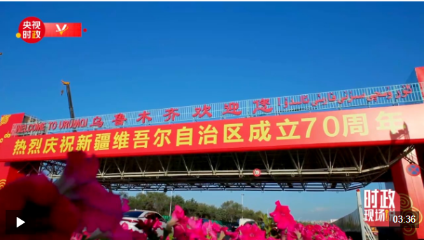 中共中央總書(shū)記、國(guó)家主席、中央軍委主席習(xí)近平率中央代表團(tuán)23日下午乘專(zhuān)機(jī)抵達(dá)烏魯木齊,出席新疆維吾爾自治區(qū)成立70周年慶祝活動(dòng)。14時(shí)20分許,習(xí)近平乘坐的專(zhuān)機(jī)在天山國(guó)際機(jī)場(chǎng)降落,等候在停機(jī)坪的新疆各族各界群眾熱烈歡呼。習(xí)近平走下舷梯時(shí),少先隊(duì)員獻(xiàn)上鮮花。各族群眾代表身著民族服飾,載歌載舞,歡迎總書(shū)記的到來(lái),表達(dá)對(duì)總書(shū)記的衷心祝福。
