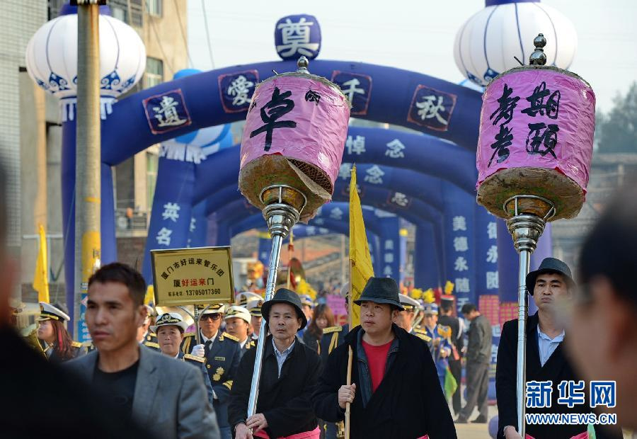 “時節”是浙江省桐廬縣富春江以南一帶農村沿襲的民間習俗,每逢“時節”,家家戶戶辦宴。桐廬全縣大、小“時節”就多達64個,從農歷八月開始,平均3天不到要過一個“時節”,常常是“你未過罷我登場”,一直延續到農歷十一月底。當地有些企業甚至被迫停工停產過“時節”。圖為福建省長樂市一送葬隊伍走出家門口。這支送葬隊伍長達2公里多,據村民介紹,這場喪事花費至少上百萬元(4月5日攝)。 新華社記者 張國俊 攝 圖片來源:新華網Bxw安康新聞網