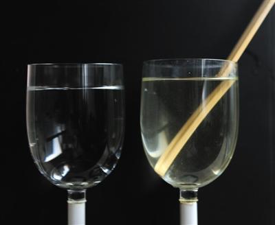 記者將竹筷放入80℃的水中,20分鐘后,與左邊的清水相比,水呈淺黃色。新京報記者 薛珺 攝一次性竹筷泡水變色 測出重金屬三種竹筷樣品測出鉛、鋅及硫元素,使用時……