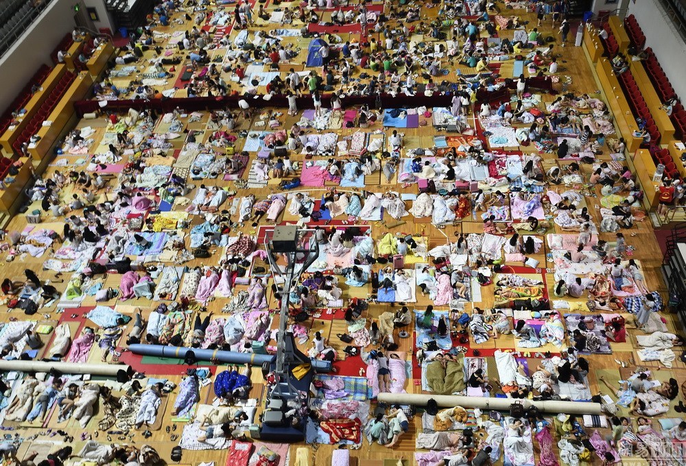 2015年6月29日晚,湖北武漢,當地最高氣溫達35度,華中師范大學特地開放體育館讓學生納涼過夜。當夜10時許,體育館內已睡滿了1000多名學生,還不斷有帶著席子的學……