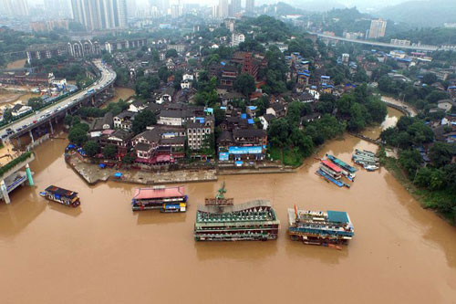 航拍2015年最大洪峰過境后的重慶城