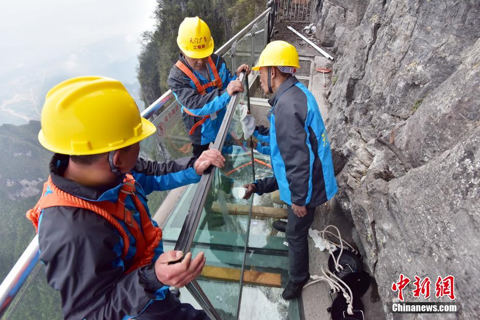 4月中旬,被稱為“東方天空之路”的張家界天門山西線玻璃棧道關(guān)閉進行維護整修,本次維護整修主要是更換棧道玻璃。4月21日,棧道新玻璃已鋪設(shè)完成,后續(xù)工作正在……
