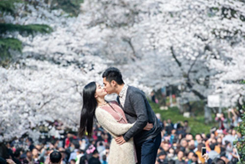 3月21日,武大櫻花盛開游客如織。當日,武大櫻花盛開的首個雙休日。長約200米的櫻花大道上1000多株櫻花競相綻放,吸引著數(shù)萬游客,使寧靜的校園變成了熱鬧的公園……