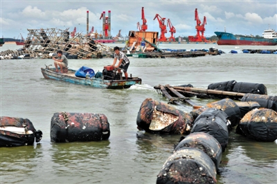 7月19日,受臺風“威馬遜”影響,一條虎頭鯨受傷擱淺在廣東陽江市海陵島附近海域,武警邊防官兵嘗試著將鯨魚送到深水區(qū)。昨日,廣西欽州漁民在搶修被臺風破壞的……