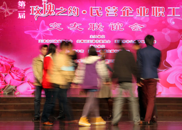 11月10日,前來相親的青年男女手牽手參與互動(dòng)游戲——“桃花朵朵開”。當(dāng)日,天津市“第二屆玫瑰之約·民營(yíng)企業(yè)職工交友聯(lián)誼會(huì)”在天……