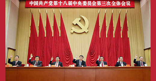 中國(guó)共產(chǎn)黨第十八屆中央委員會(huì)第三次全體會(huì)議,于2013年11月9日至12日在北京舉行。這是習(xí)近平、李克強(qiáng)、張德江、俞正聲、劉云山、王岐山、張高麗等在主席臺(tái)上。新……