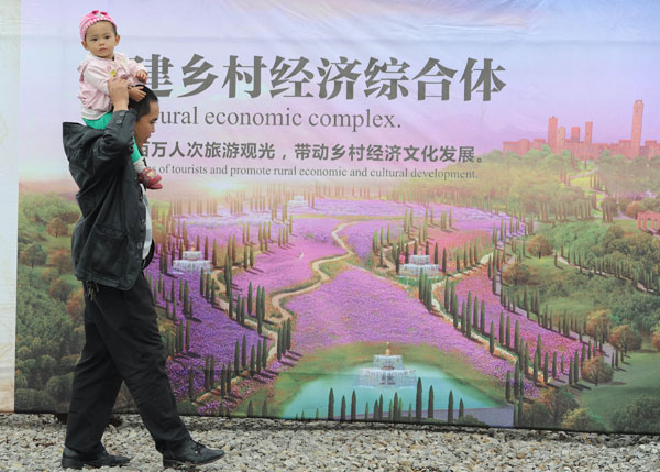 10月22日,重慶市渝北區(qū)興隆鎮(zhèn),當(dāng)?shù)卮迕駧е『⒃诘旎鶅x式現(xiàn)場(chǎng)參觀效果圖。當(dāng)日,重慶“五谷地意大利休閑度假農(nóng)場(chǎng)”正式破土動(dòng)工。該項(xiàng)目按照意大利風(fēng)格設(shè)計(jì),……