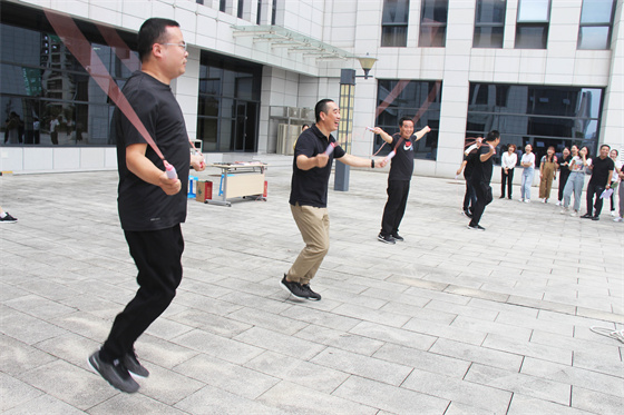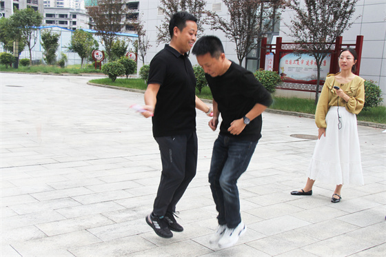 當然比賽中還有許多“小插曲”,有的選手鞋帶松了,有的選手繩子扭了,有的選手眼鏡掉了,有的選手被大繩打到疼得哇哇叫,但正是因為有了這些小插曲,才讓參與者的笑聲更響,讓這場比賽變得更生動有趣,也讓“快樂工作、幸福生活”這句話有了最真實的體現。